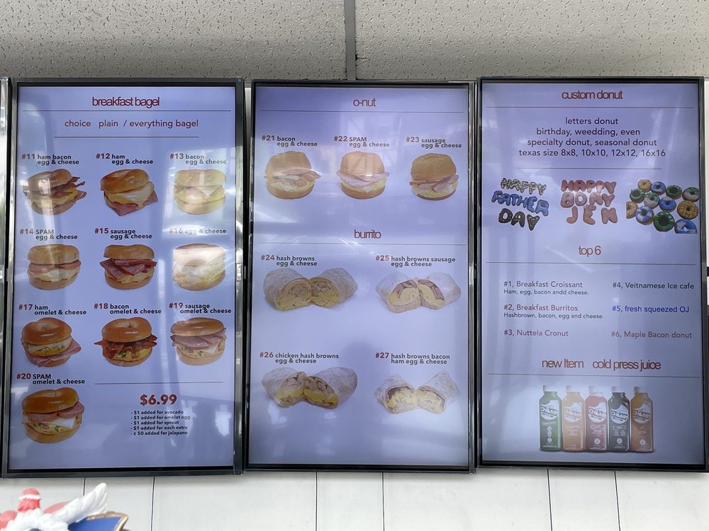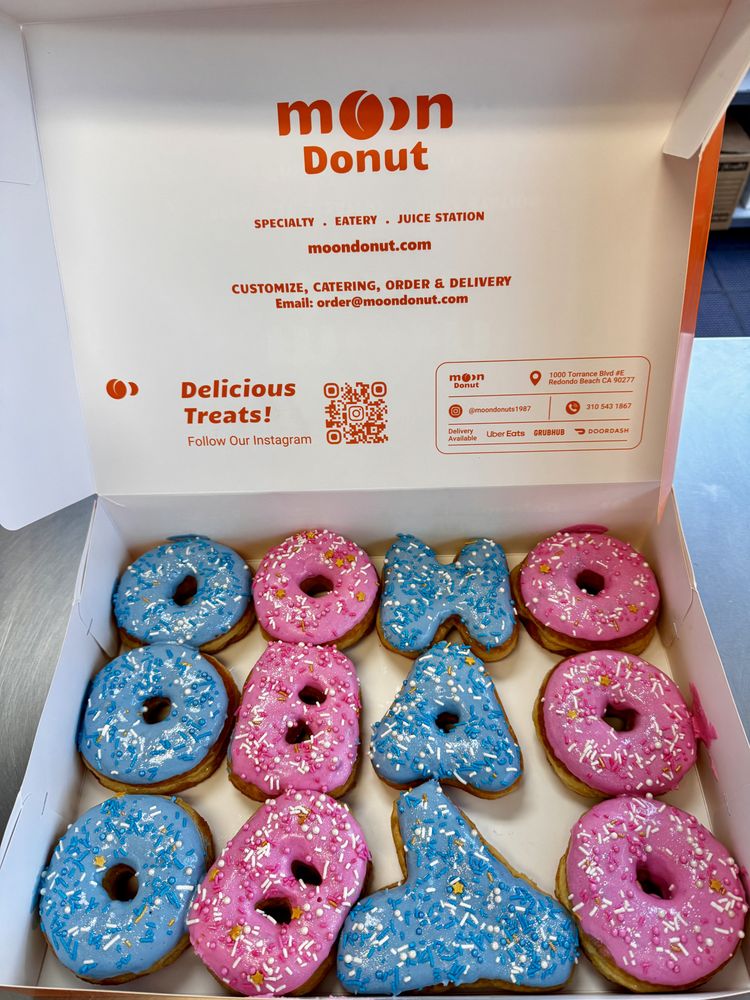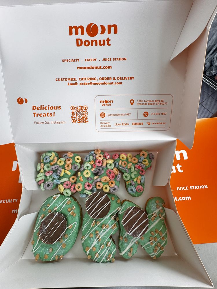 Introducing the menu at Moon Donuts, located in Redondo Beach, CA. This donut shop offers a variety of specialty donuts, coffee, tea, and sandwiches. Customers rave about the fresh and plump filled donuts, especially the apple fritter. The Denver Omelette Croissant and Vietnamese coffee are also highly recommended. With a pleasant and patient staff, Moon Donuts is known for its quick service and unique options like the Lucky Charms donut. The atmosphere is described as a happy and welcoming place, where you can't help but leave with a smile. Plenty of parking and quick service make it easy to stop by for a delicious treat. Don't miss out on the donut selection and sandwiches that keep customers coming back for more. Experience the yummy fried foods and high-calorie delights at Moon Donuts.